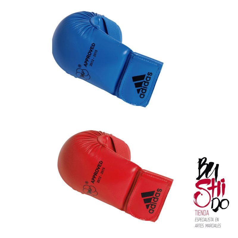 Confortable y ligera, fabricado en polipiel. Relleno interior de espuma moldeada, con protección en dedo pulgar. Oficial para competiciones de la Federación Mundial de karate.